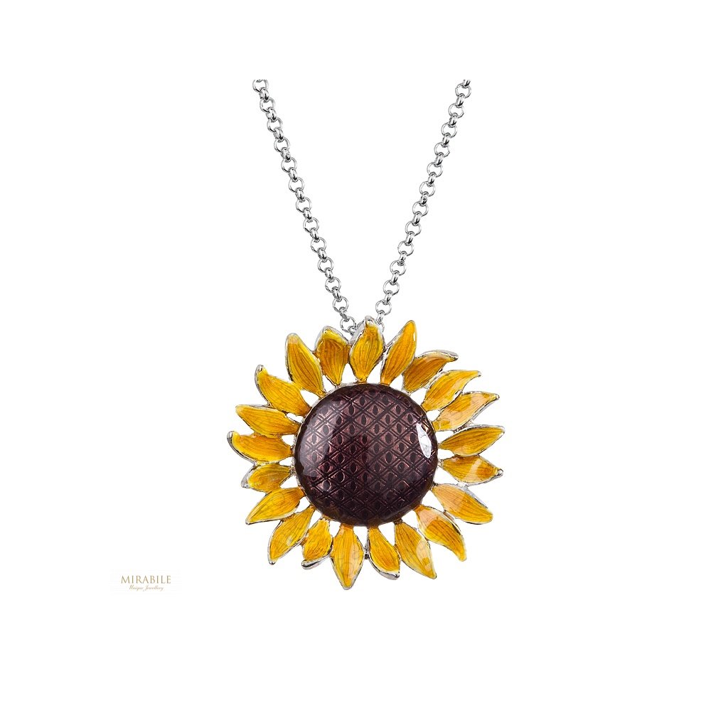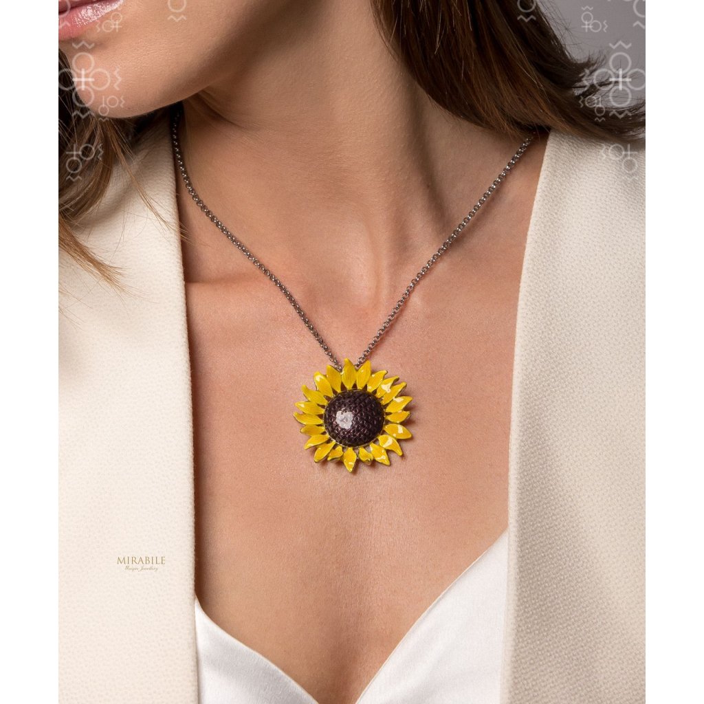 Náhrdelník slnečnica má veľkosť 4 x 4 cm. Retiazka je vyrobená z chirurgickej ocele a meria 42 cm. Na konci retiazky nájdete aj predlžovaciu časť s dĺžkou 7 cm a tak si ju môžete nastaviť presne podľa Vašich potrieb.