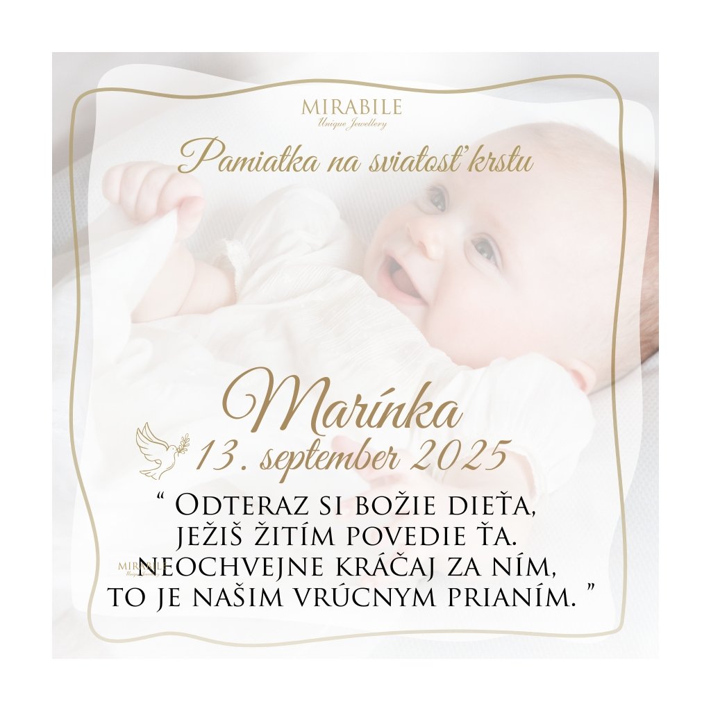 Cena produktu obsahuje : papierovú krabičku na šperk v rozmere 8x8 cm + grafické spracovanie osobného venovania s vlastnými údajmi, vytlačené na kvalitnom lesklom foto-papieri .