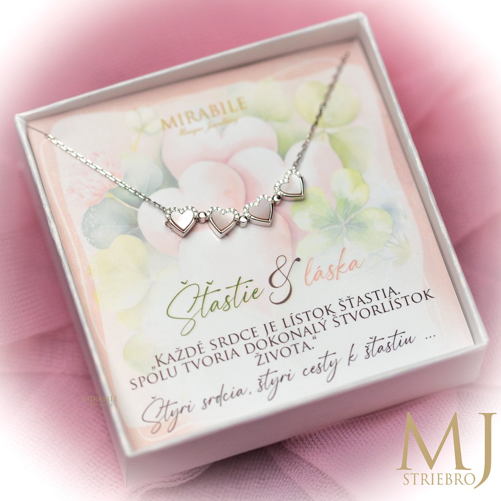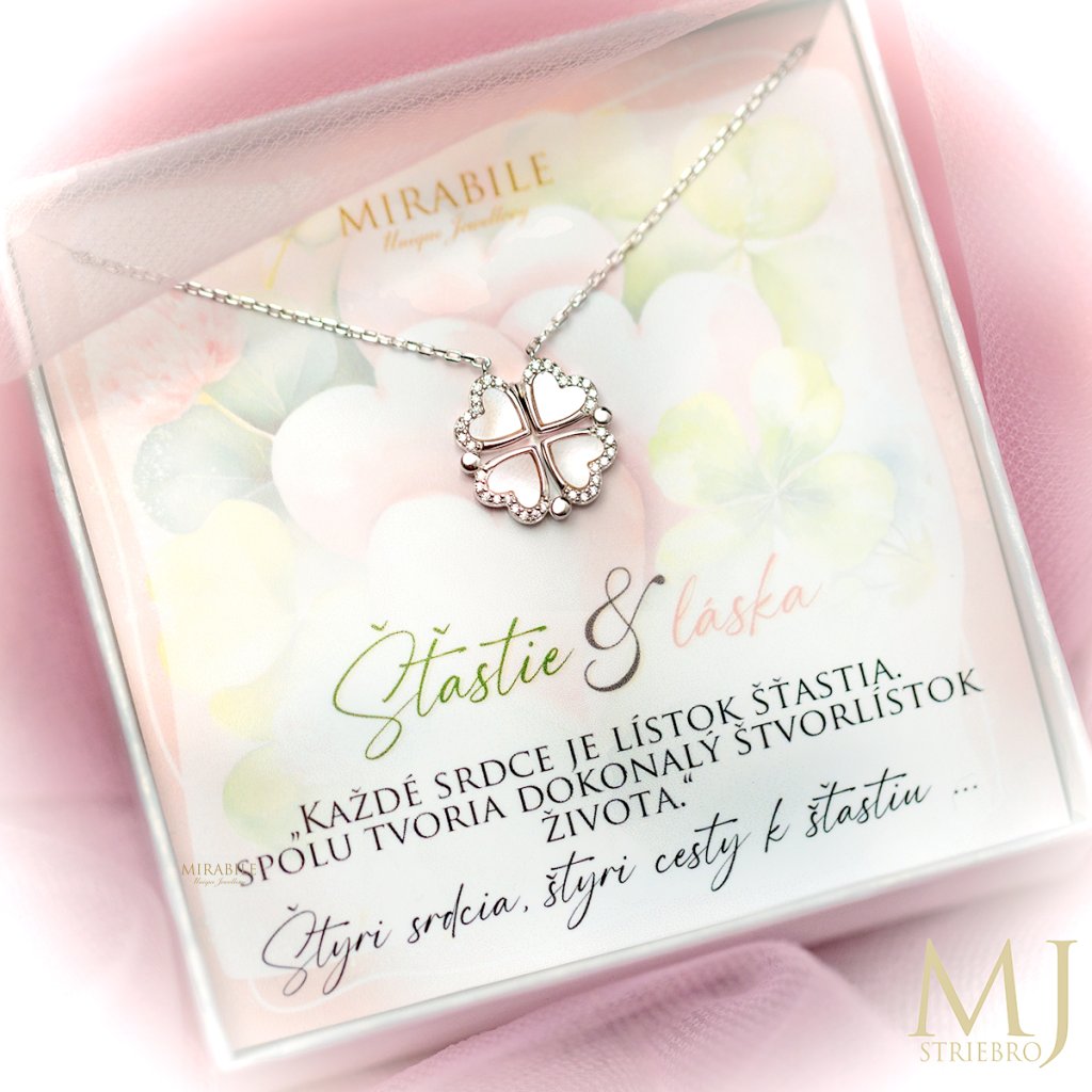 Objavte krásu jemného strieborného náhrdelníka, ktorý spája eleganciu štvorlístka a symboliku štyroch sŕdc.