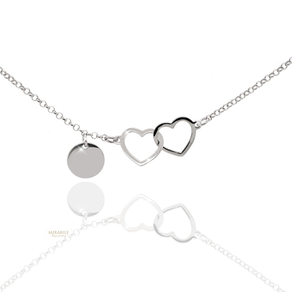 Strieborný náramok spojené srdcia s platničkou