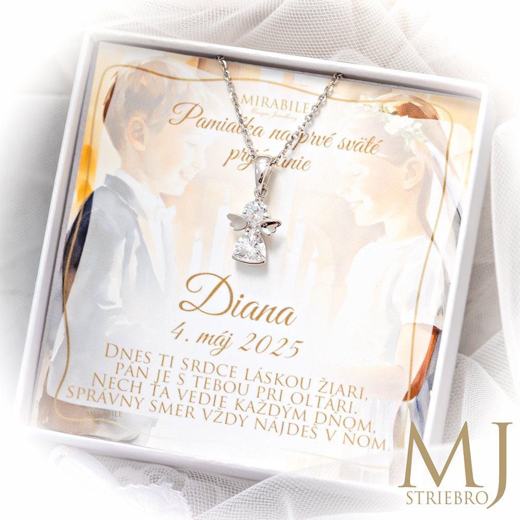 Jemný prívesok v tvare anjelika s čírym, trblietavým kameňom je krásnym darom na prvé sväté prijímanie alebo inú výnimočnú príležitosť. Symbol ochrany a lásky, ktorý poteší každé detské srdce.