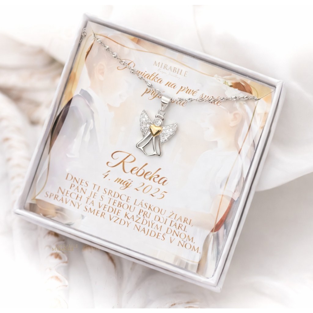Každý detail prívesku vyžaruje nežnosť a zároveň silu požehnania, ktoré anjel prináša. Elegantne balený v originálnej krabičke s personalizovaným venovaním, zanechá nezabudnuteľný dojem a stane sa srdcovou spomienkou na celý život. Meno a dátum udalosti si zadajte do poznámky pri objednávke.