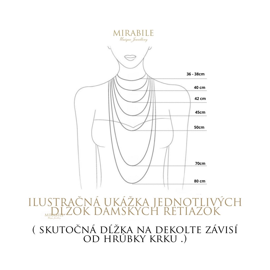 Štandardne platí pri dámskych/detských dĺžkach- veľmi tenký krk : 36, 38, 40cm, tenký krk : 40,42cm, štandardná dámska dĺžka : 45cm, pevnejší krk : 50,55cm, veľmi pevný krk : 55,60cm
