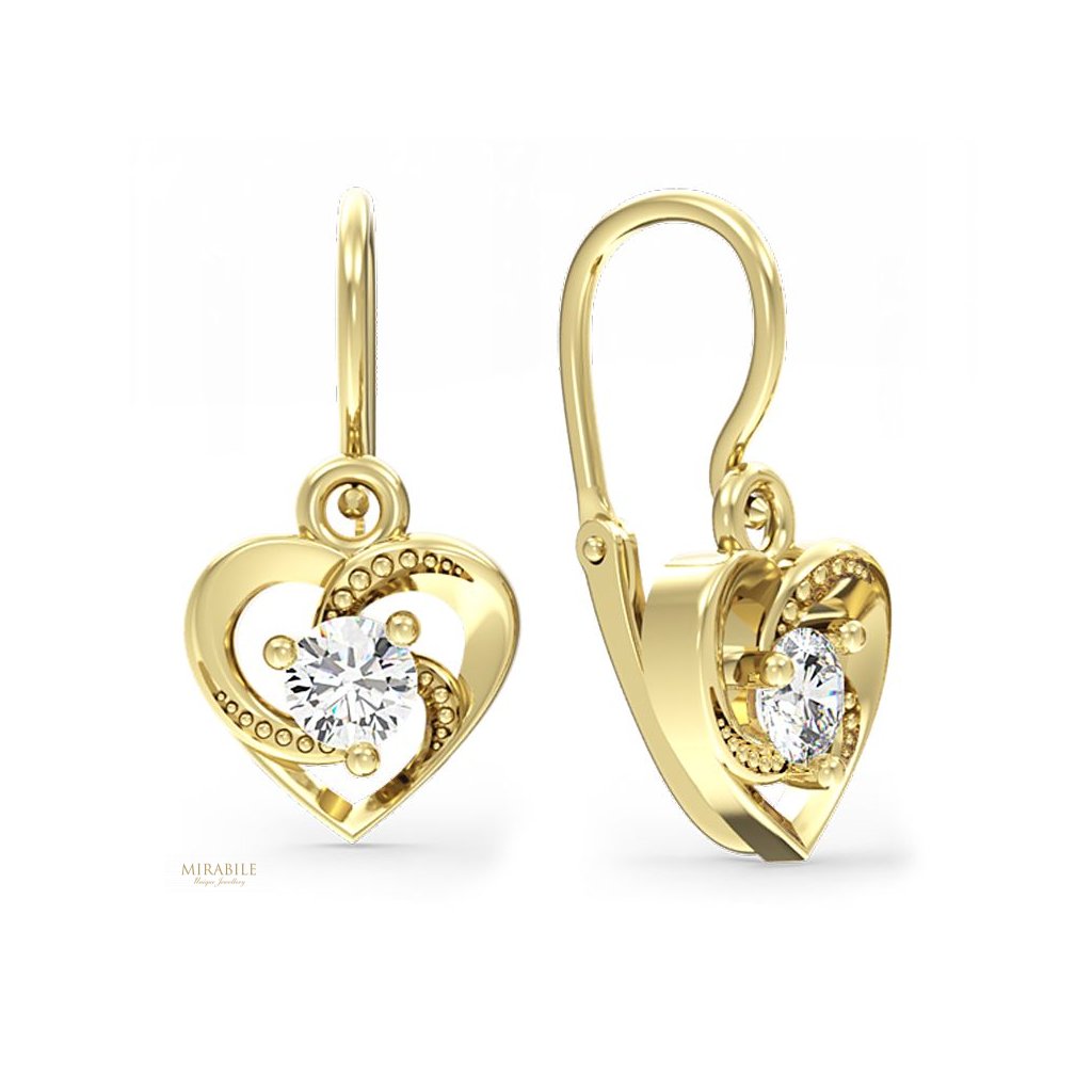 Zlaté bábätkovské náušnice srdiečka s bielym zirkónom