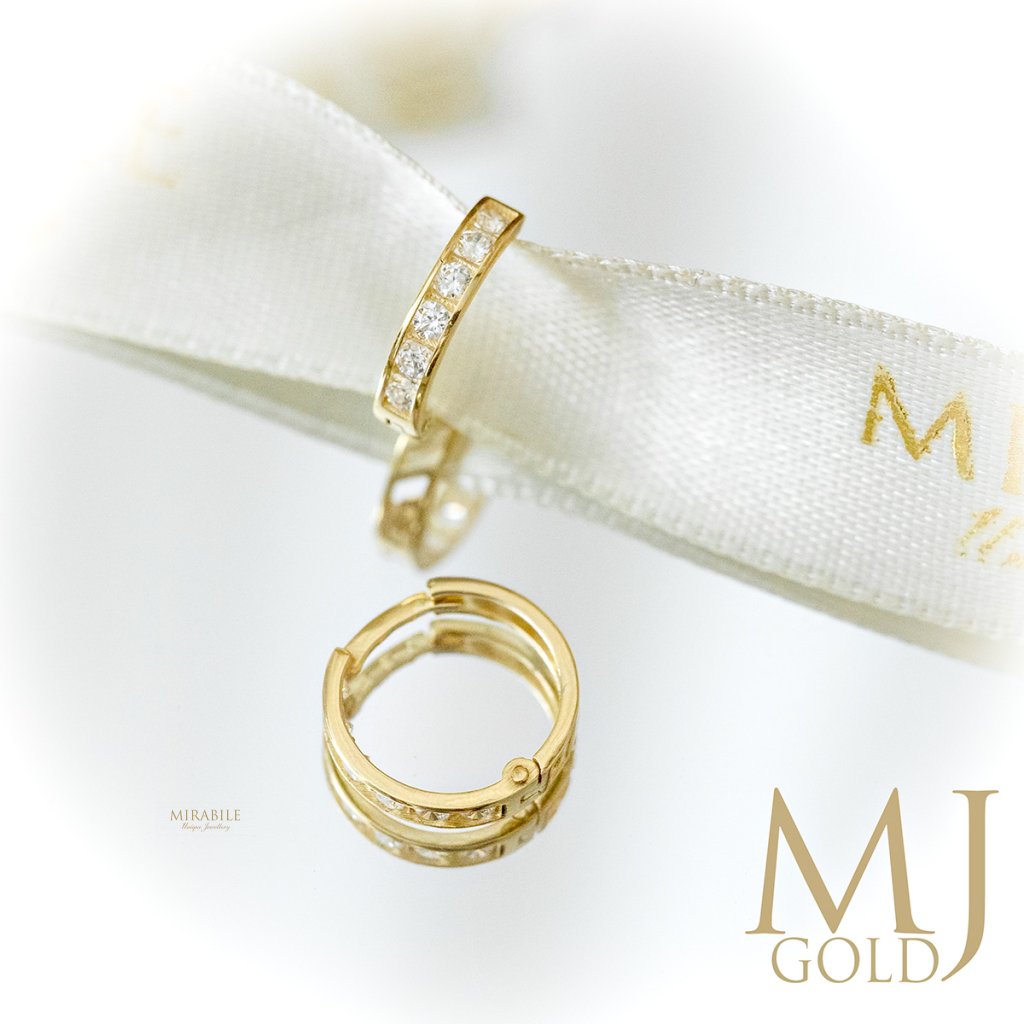 Tieto jemné zlaté detské náušnice v tvare krúžkov sú ako stvorené pre malé princezné. Ozdobené sú trblietavými bielymi zirkónmi, ktoré dodávajú šperku elegantný ligot a zároveň zachovávajú jeho detskú jemnosť.