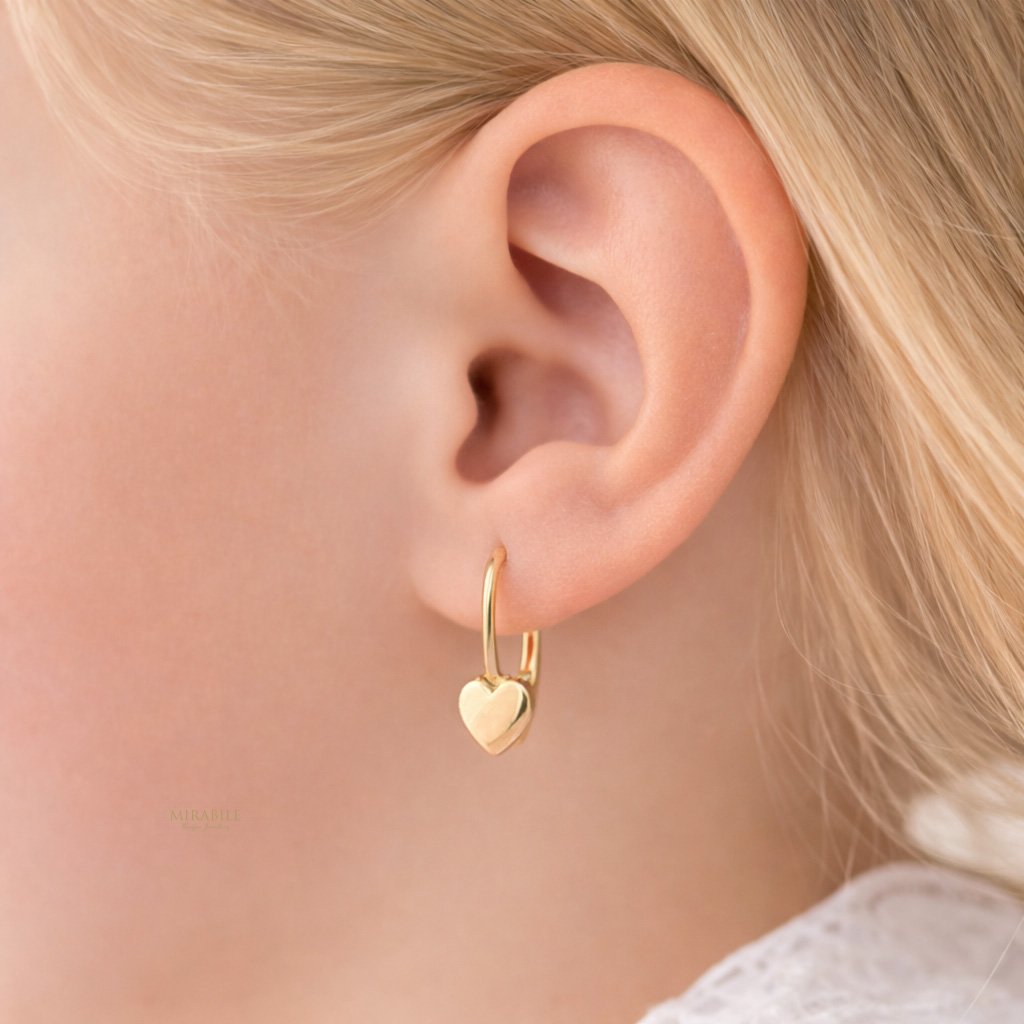 Jemné detské náušnice v tvare srdiečka sú krásnym symbolom lásky a nehy. Vyrobené zo žltého zlata s hladkým, lesklým povrchom pôsobia elegantne a nadčasovo, vďaka čomu sú ideálne na každodenné nosenie aj výnimočné príležitosti.