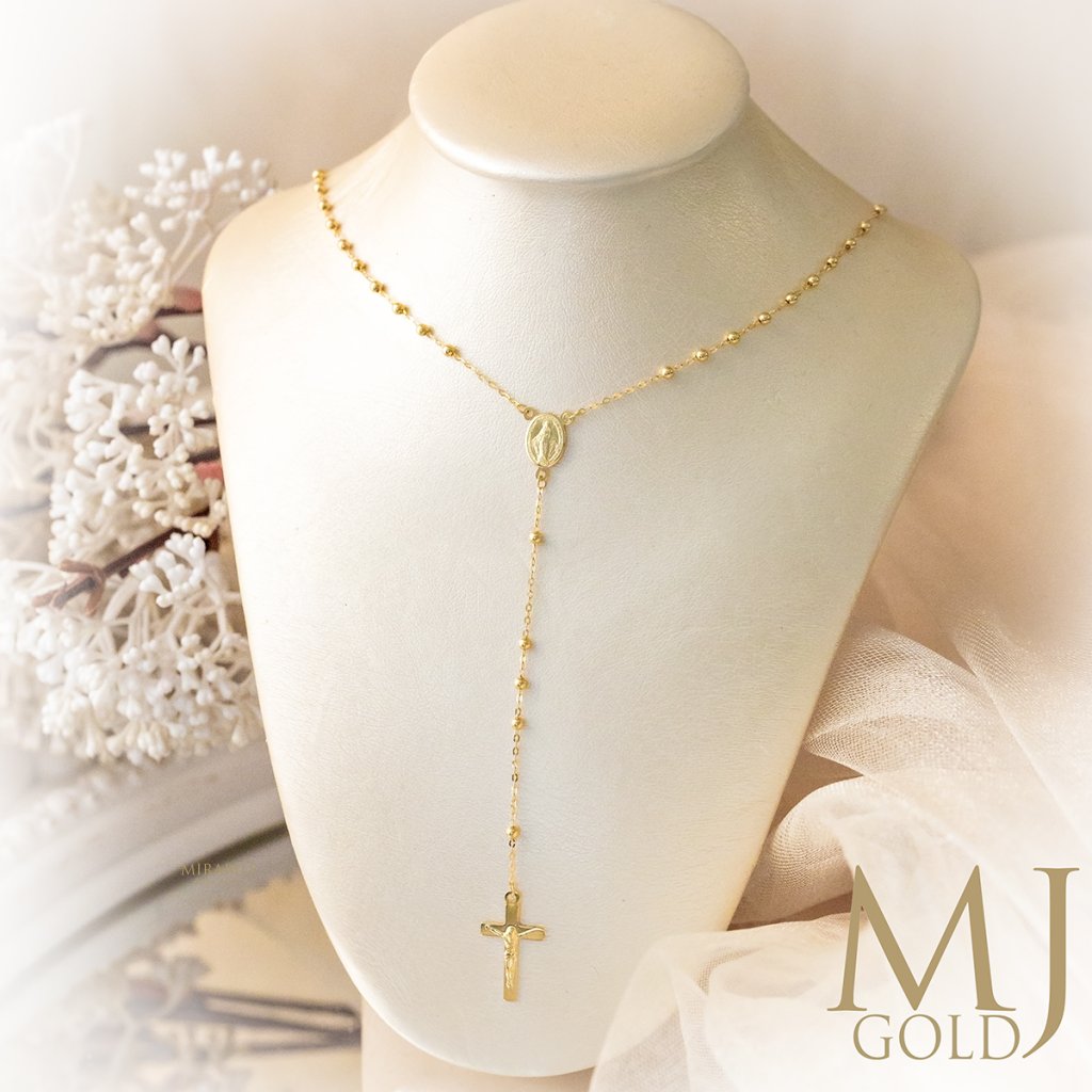 Elegantný a nadčasový zlatý ruženec na retiazke z kolekcie MJ Gold je spojením viery, tradície a jemnej krásy. Tento šperk váži 3 g, má dĺžku 45 cm a je vyrobený z kvalitného žltého, 14 karátového zlata.