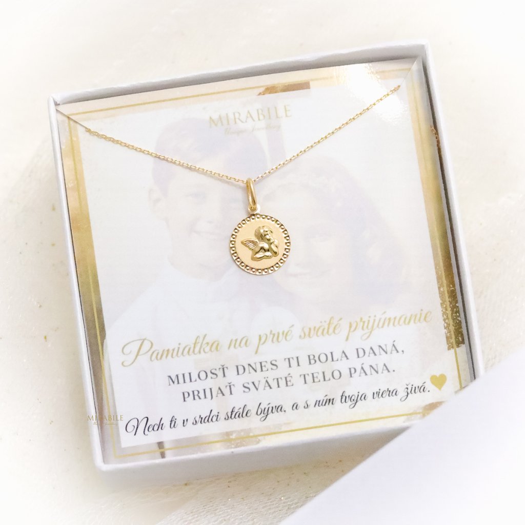Zlatý okrúhly prívesok s anjelom