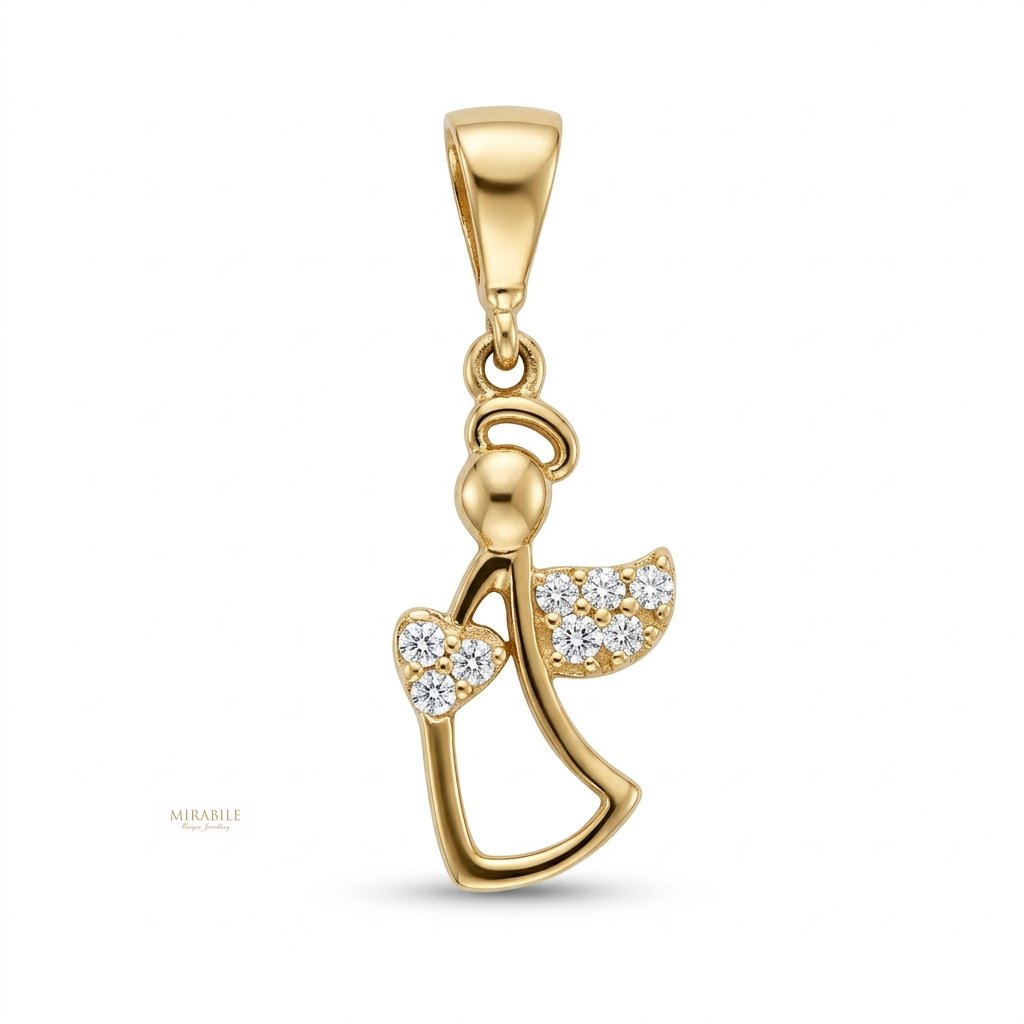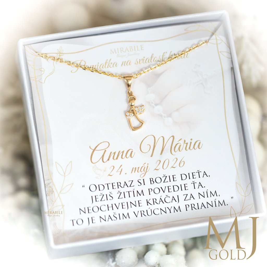 Zlatý prívesok anjelik s kamienkovým srdcom