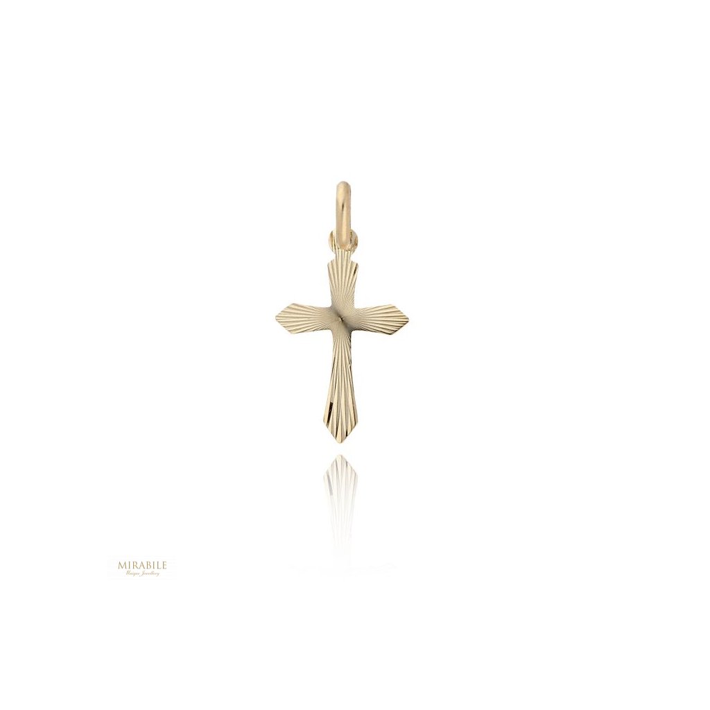 Tento jemný a elegantný zlatý krížik je symbolom viery, ochrany a duchovnej sily. Klasický dizajn doplnený gravírovanými detailmi dodáva šperku nadčasový vzhľad, ktorý bude krásnou spomienkou na významné duchovné okamihy. Ľahký a decentný prívesok je ideálny na každodenné nosenie aj ako darček na prvé sväté prijímanie.